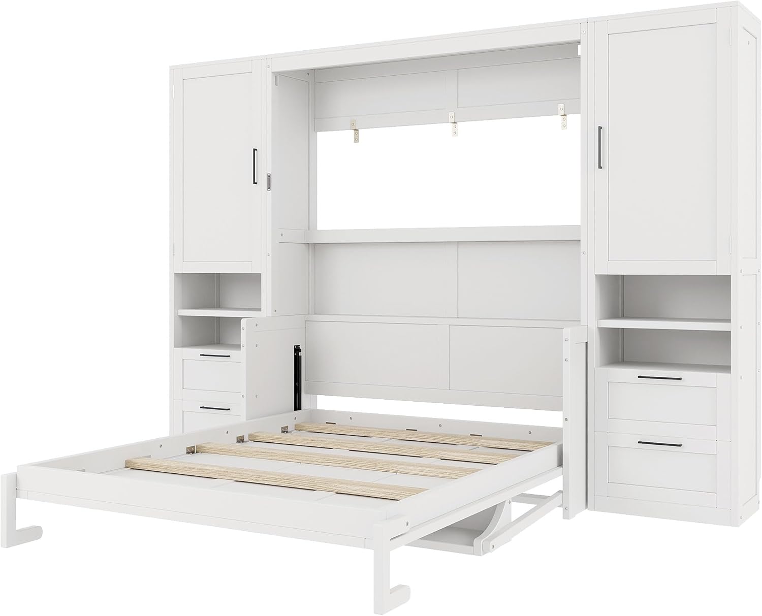 Full Size Murphy Bed review: space-saving full bed folds into cabinet with shelves, USB-C charging, piston lift, easy assembly—ideal for dorms, studios, guests.