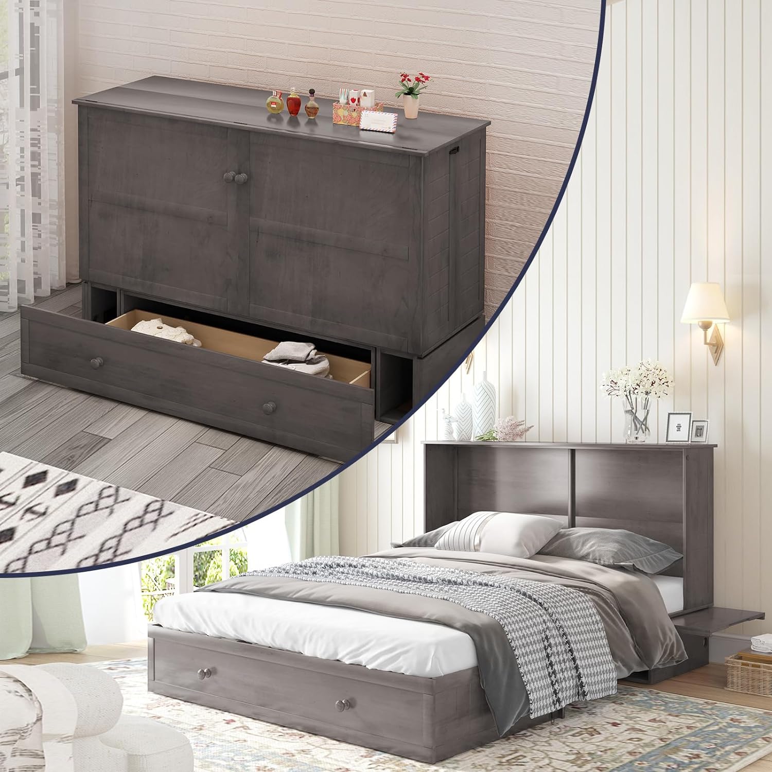 Q: Can I easily switch between the bed and cabinet? A: Yes, the pulley mechanism allows for seamless switching between the bed and cabinet, making it effortless to transform the furniture based on your needs.